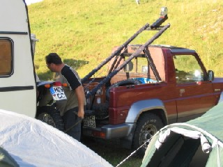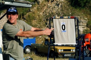 ![]() Jürgen mit dem "Lumpensammler". Er begleitet uns auf den Zwischenetappe - die Sonderprüfungen darf er nicht mitfahren. |