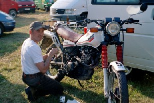 ![]() Jetzt schraubt der immer noch. Diesesmal vergisst er die Schrauben an seiner Sitzbank, die er übermorgen verlieren wird. |