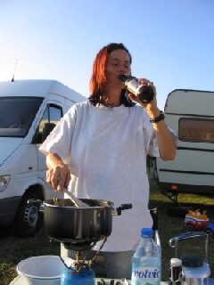 ![]() Präsi kocht einen auf. Gleichzeitig Kochen und Saufen - ob das mal gut geht... |