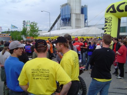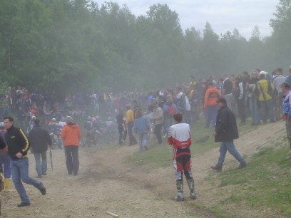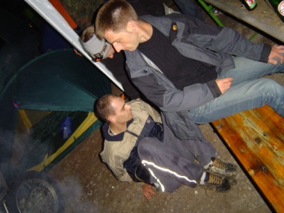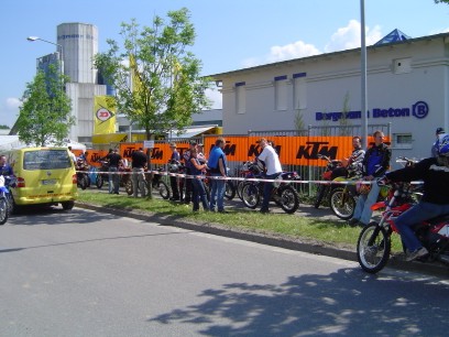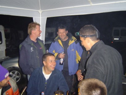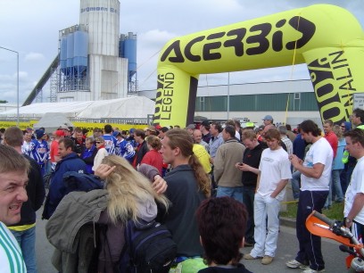 ![]() Fahrerbesprechung. Baboons ist der Veranstalter und brieft die Fahrer: vorsichtig fahren, kameradschaftliches Verhalten, nicht die Umwelt verschmutzen, und so weiter und so fort... blabla - völlig wurscht - macht eh jeder. |