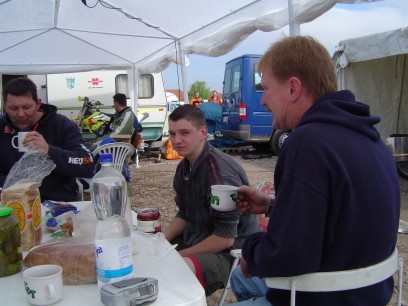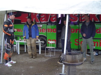 ![]() am nächsten Morgen schon wieder ein Lächeln auf den Lippen. Schnell noch Grillen und dann wieder ab ins Fahrerlager. |