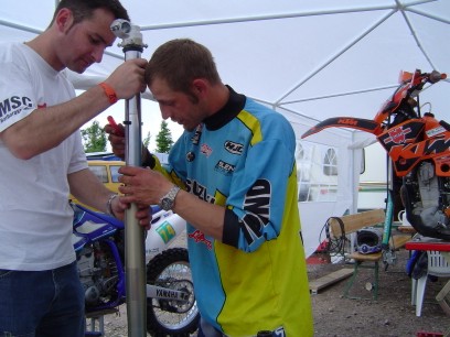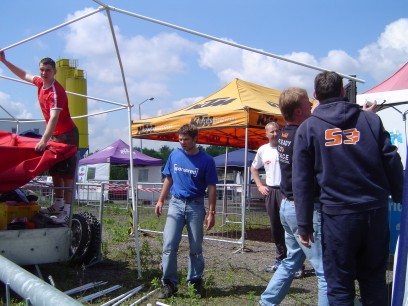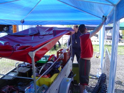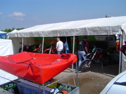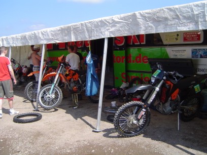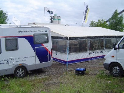 Vom Teambus bis zum Fahrerlager sind es mal so 500 Meter. Wir packen alles in den Hänger und bringen das Zeugs dorthin. |