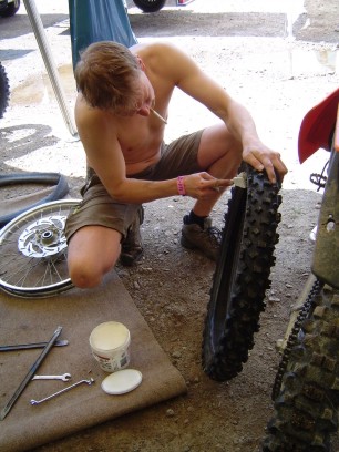 ![]() Olaf (Mechanic #3) hat die Stellung gehalten und unsere Bikes auf Vordermann gebracht. |