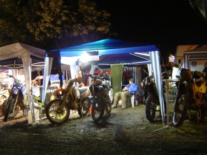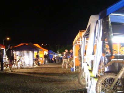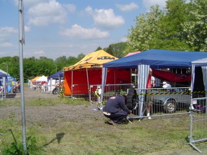 Blick ins Fahrerlager. Viele Teams machen Pause, schließen Ihren Pavillon und legen sich ins Bett. Aufgrund der schwierigen Streckeführung sind bei den Hobbyteams teilweise Rundenzeiten von bis zu einer Stunde möglich. |