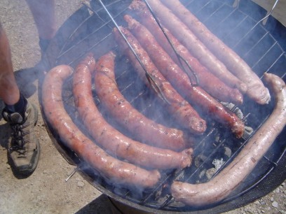 ![]() Fiedel grillt noch mal einen auf. Die Würste hat Huski organisiert (Thüringer) und sind vom Feinsten. |
