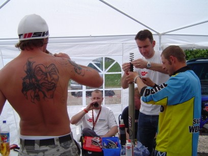 ![]() Die Frankenhäuser Soletropfen zerlegen nochmal schnell eine Gabel. Fahrwerks-Holger übernimmt die Fummelei mit dem Dichtring. |