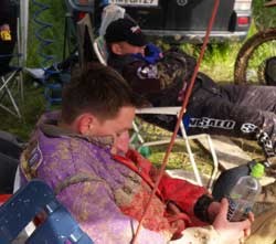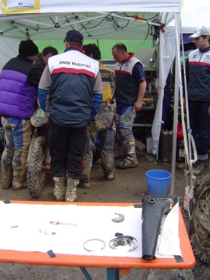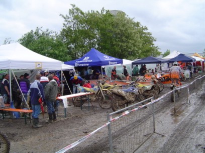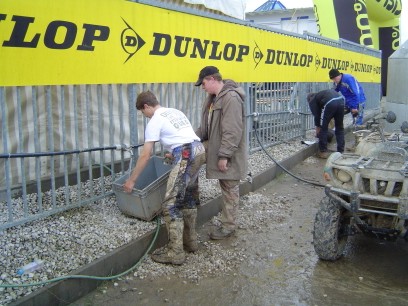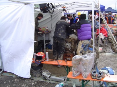 ![]() Mittlerweile ist die Schlammpiste ins Fahrerlager gewachsen. |