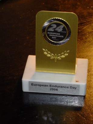 Lohn der Mühe: ein Bembl 8x8x10cm. Was man neidlos sagen muß: Das war eine toll organisierte Veranstaltung. Baboons und Neubert Racing Team sind halt Profis. Wer dem "Leibhaftigen" auf dem Moped begegnen will, der soll hier mal nachts ein paar Runden drehen. |