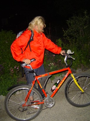 ![]() Angedudelt auf dem Mountainbike. Im Flaschenhalter ein Becks. Dazu signalorange Kleidung. Und auf dem Rahmen noch die Polizei verarschen - ob das mal gut geht... |