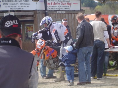 ![]() ...und dann wieder Kirssi. 105 BMW PS, pilotiert von zwei echten Weltmeistern, bringen beim Start auf der Cross Piste so manchen "Local Hero" ins schwitzen. Mit einem Drehmoment von wahrscheinlich über 100Nm (525 EXC ca. 55 Nm) ist das kein Wunder...
