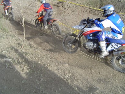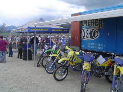 ![]() Alles wäre ganz ruhig verlaufen. Wäre da nicht dieses Fahrzeug (besser gesagt zwei) gewesen. Eine 2-Zylinder-BMW in mitten einer Enduro-MotoX Veranstaltung. |