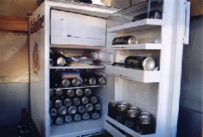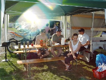 ![]() Freitag Ankunft. Super Wetter. Der Kühlschrank hatte zwei Tage Zeit 120 Dosen Bier zu kühlen - das zischt. |