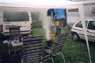 ![]() Die O`s zünden ihren Pavillon an, anstatt Grillkohle. Tja, die Gewohnheiten aus der Mangelwirtschaft... |