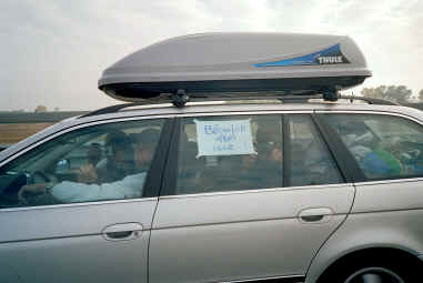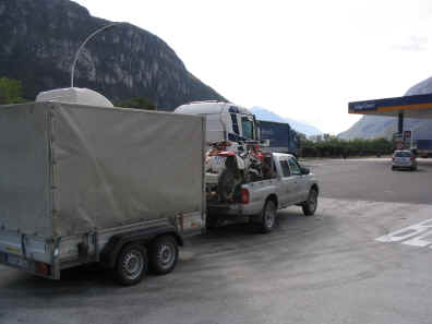 ![]() Zu sechst waren wir mit einem Kombi mit Dachbox und ein Pickup mit Planenanhänger unterwegs. |
