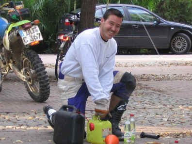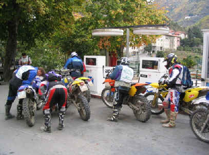 ![]() Samstag abend: Spritreserve auffüllen für den morgigen Sonntag: Start zur Pistonata. Manche tanken unterwegs - Tom nimmt lieber einen Molotow-Cocktail in seinem Rucksack mit. |
