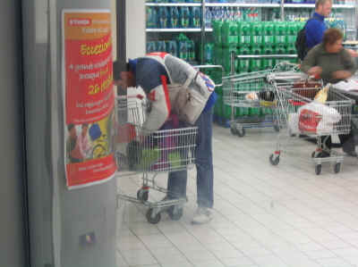 ![]() FJS beim Einkauf: Waschpulver, destiliertes Wasser fürs Bügeleisen... |
