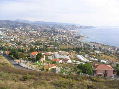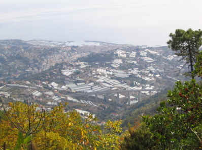 ![]() bis Sanremo ganz klein verschwindet. Im Bild die vielen Gewächshäuser. |