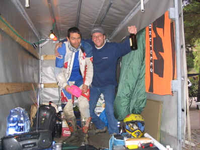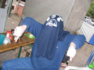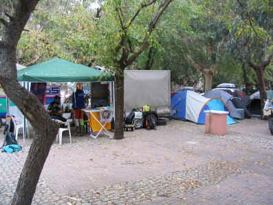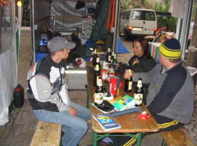 ![]() Unser Lager für 6 Personen: 1 Pavillon, 1 Planenanhänger, 2 Kühlschränke und 6 (!) Zelte (für jeden eins). Freitag: 6 Motorräder, Samstag: 3 Motorräder |