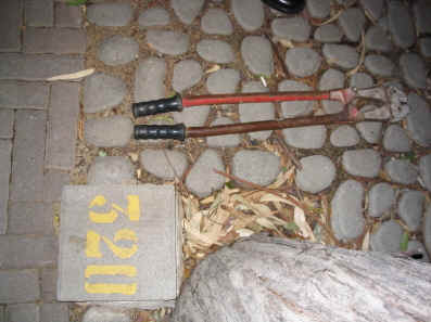 ![]() Stimmt - an dem Ort an dem unsere Mopeds standen liegt ein Bolzenschneider: 3 Mopeds geknackt und gestohlen. |