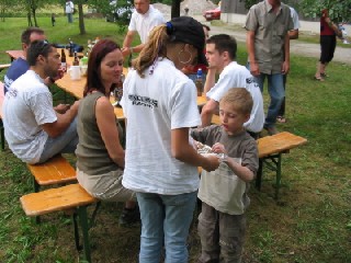 ![]() Gleich beginnt die Bobbycar-Ralley (siehe letztes Jahr). Nochmal schnell zum Toilettenwagen.... |