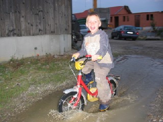 ![]() Der einzige mit Zweirad am Hof. Tret-Endurist Vinzenz |