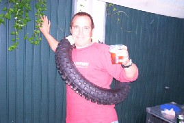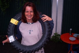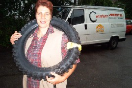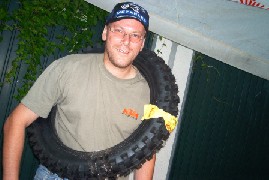 Nebenan die Enduro5-Mitglieder mit umgehängten Reifen. Es gäbe Originelleres. Zum Beispiel ein Gruppenfoto... |