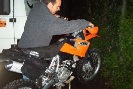 ![]() Micki startet Sylvias 250er. Muss aber aufpassen, damit er nicht selber in die Luft fliegt... |