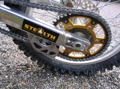 Kettenrad: (schwarzer) Zahnkranz aus Stahl gegen Verschleiß, goldener