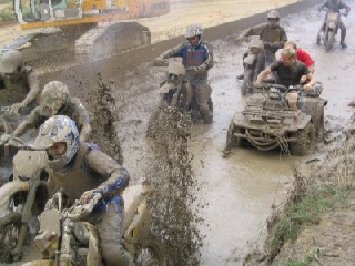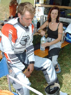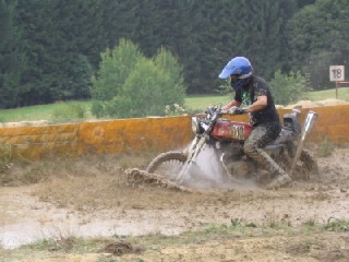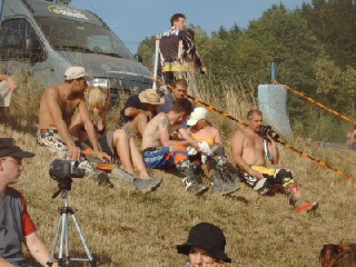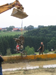 ![]() Funwettbewerb Schlammrennen. Eine Schlammbahn über 40m muss durchfahren werden. Ca. 40cm tief, wie flüssiger Beton. Bin 2002 mitgefahren, danach waren alle Radlager im Arsch (dachte mir schon, warum fahren die alle so alte Kisten?). Daher heuer nur Zuschauer |