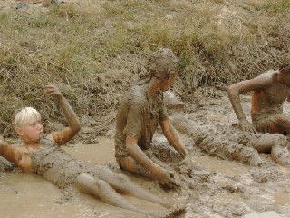![]() Funwettbewerb: Kinder suchen im Schlamm versteckte Leckereien. |