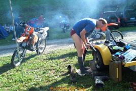 ![]() Sonntag 14:00 Schlammrennen. Hier wird eine FZR durch die 30m lange und 40cm tiefe Schlammbahn geprügelt, eigentlich nur einen Meter weit. Die restlichen 29m wird sie von den Helfern gezogen. |