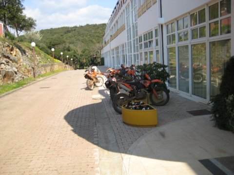 Die orangen Rösser warten vor der Bar während die Reiter eine Espresso schlürfen