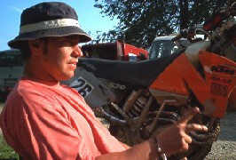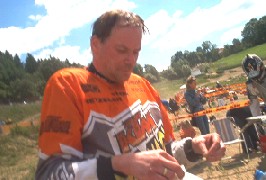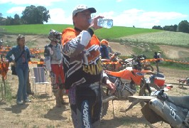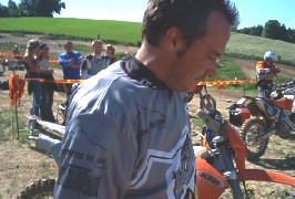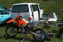 EXC520 startbereit zum zweiten Lauf am Samstag. Hinten am Tisch: Neues Enduro 5 - Mitglied Sylvia (EXC250 KTM)