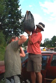 Enduro 5 Fahrerlager. Wo ist die Fahne ? (die zum Aufhängen natürlich, die andere hatten wir gestern abend...)
