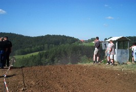 ![]() Gesperrtes Schlammloch - trockene Strecke. Zwischen den Läufen mit dem Odelfaß künstlich bewässert (zwecks Staubentwicklung)