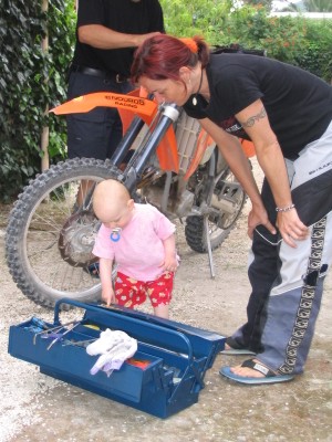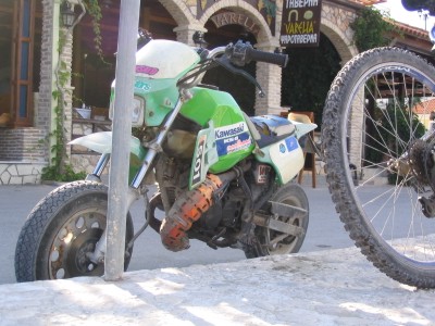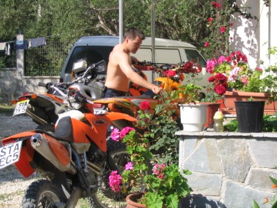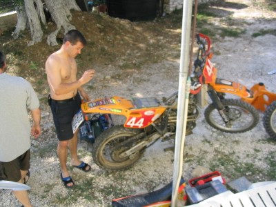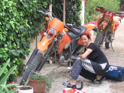 ![]() Vorbereiten der Mopeds. Die alte Kickstart-LC4 springt nicht mehr richtig an. |