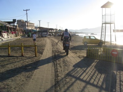 ![]() hinten der breite Strand. Der ist gut für 120km/h. Wehe da ist eine Sandburg, die du nicht siehst... |