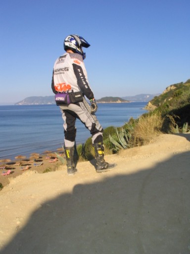 ![]() Mopedfahren nur in der Frühe. Das ist es kühl und wenig Verkehr. Man muss nur aufpassen, dass man keine besoffenen Engländer am Strand plattfährt. KDW startet die dicke Berta. |