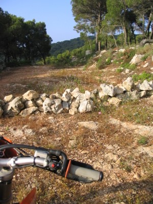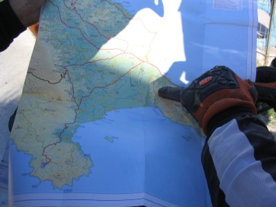 ![]() "Hier soll keiner durchfahren" auf griechisch. Sehr wirkungsvoll. Wir respektieren den Wunsch des Erbauers und drehen um. |