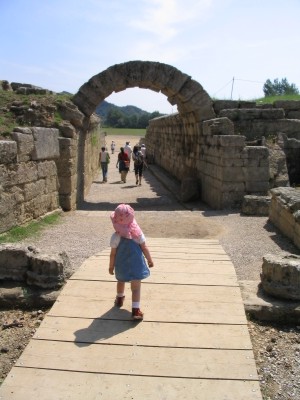 ![]() und machen noch Halt in Olympia. Evalein auf dem Weg zum Stadion. |