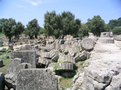 ![]() Der Zeustempel. Wieder aufstellen? Die Säulenscheiben haben 2m Durchmesser. |