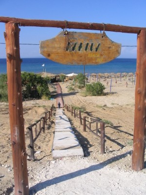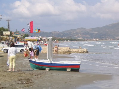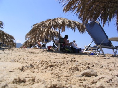 ![]() Der Strand von Laganas. Bettlager für viele, die es nicht mehr aus den Bars nach Hause schaffen. |