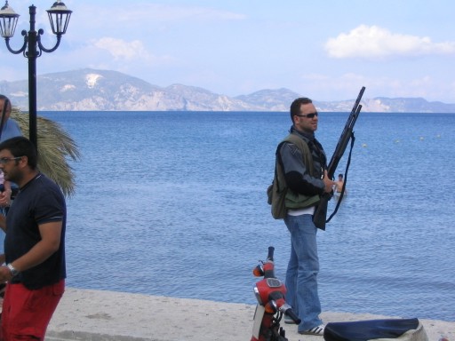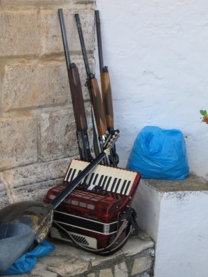 ![]() Quetschkommode, Buffe und Balalaika. Des Griechen Grundausstattung für eine zünftige Hochzeit. Ach ja - natürlich noch eine Plastiktüte voll Munition (scharfer Schrot natürlich). |