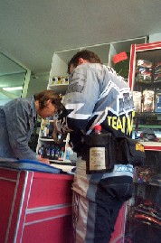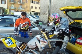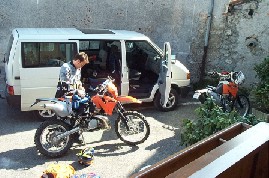 Und am Freitag geht`s dann auch los: Mickey beim Mopedcheck vor der Abfahrt. Strahlendes Wetter, so ca. 20°C tagsüber (nachts 1°C)..., blauer Himmel - Idealbedingungen.