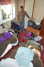 Typische Mopedbude: 2 Sterne Hotel. Bett nur 1,80m lang - als Bettenrost dient ein alter Jägerzaun. Aber sonst alles picobello (bis auf 2 Kubikmeter Mopedklamotten in der Bude).