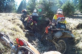 In der Rinne müssen wir warten bis die "Besseren Fahrer" das Hindernis überwunden haben. Dann können schließlich auch zügig die hinteren "Schlechteren" durchfahren :o))