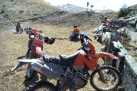 hier eine Gas Gas allein unter 6 KTM (2x EXC520 4T, 2x EXC300 2T, 1 EXC250 2T, 1x LC4 400 4T)