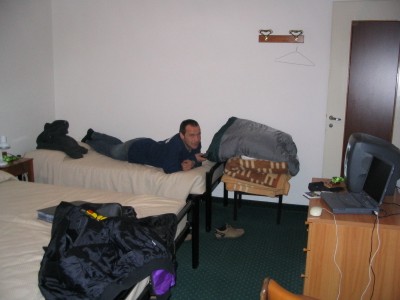 ![]() Mittagspause auf der Stube. Fernsehen auf italienisch. Die Programme sind noch mieser als in Deutschland - und das will was heißen. |