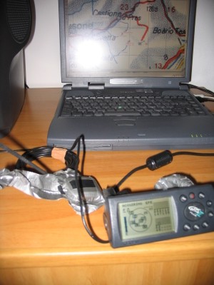 GPS (Global Positioning System). Im Vordergrund das GPS (einfaches Garmin 2plus, Platine vergossen bei Touratech, Akkubetrieb) , das unterwegs Koordinaten sammelt. Im Hintergrund das Laptop. Darin lassen sich dann die gesammelten Koordinaten in einen Track auf dem Bildschirm darstellen. Wenn man eine passende elektronische Karte hat... Und und und |