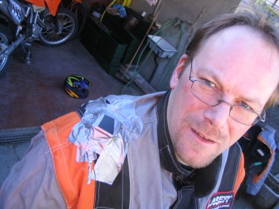 Die GPS-Antenne (AUtodachantenne mit Magnet, 4m Kabel !) wurde mir auf die Schulter geklebt. Ist astrein, solange es nicht regnet, dann fliegt das Ding runter. AM 2ten Tag ist das Kabel im Stecker abgegangen, jetzt frag Du mal den Wirt ob er einen Lötkolben hat (Entweder er schüttelt den Kopf, oder er haut Dir in die Fresse...) |